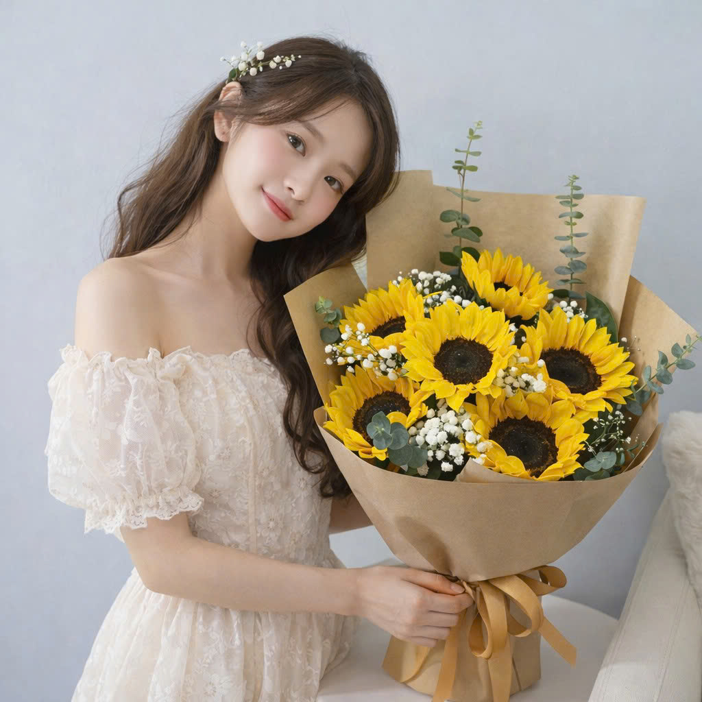 Nếu bạn đang tìm kiếm một món quà vừa rực rỡ vừa mang nhiều ý nghĩa tích cực, thì bó hoa hướng dương chắc chắn sẽ là lựa chọn hoàn hảo. Với sắc vàng tươi sáng đặc trưng của hoa hướng dương, bó hoa mang đến cảm giác ấm áp, tràn đầy năng lượng và hy vọng. Không chỉ là một món quà đẹp, đây còn là biểu tượng của niềm tin, sự chung thủy và lời hứa về một tình yêu bền lâu.