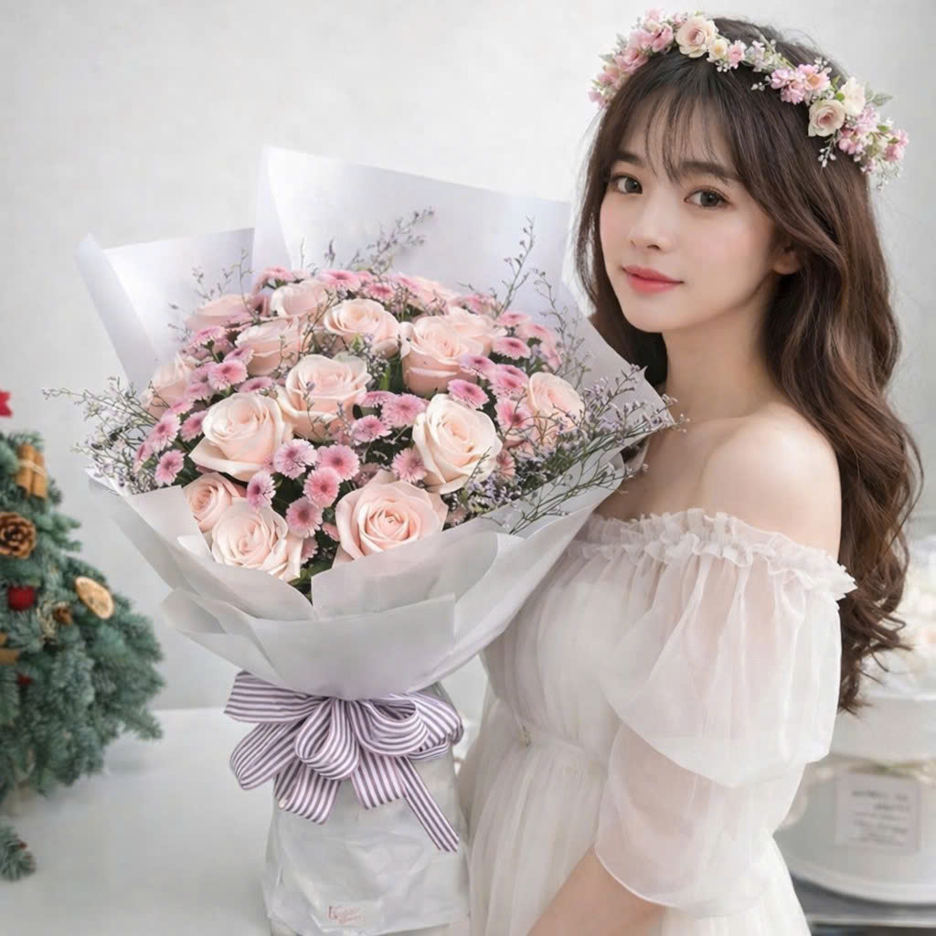 Bên cạnh ý nghĩa, giá trị thẩm mỹ của bó hoa cũng là điều khiến nhiều khách hàng yêu thích. Hai mươi bông hồng được tuyển chọn kỹ lưỡng, cánh hoa dày, form tròn đều, kết hợp cùng hoa phụ nhỏ xinh tạo nên tổng thể hài hòa. Cách phối màu kem, hồng phấn, trắng mang đến cảm giác trang nhã, hiện đại và sang trọng. Đây không chỉ là một bó hoa, mà là một thông điệp yêu thương được thiết kế bằng sự tỉ mỉ.
