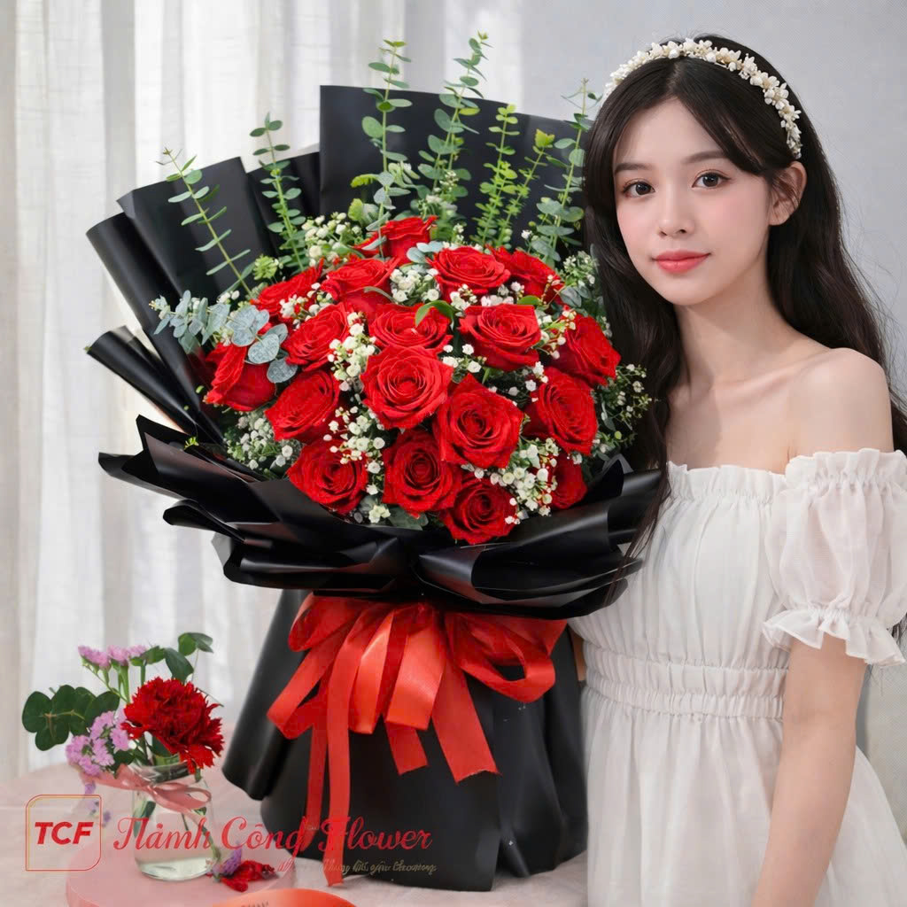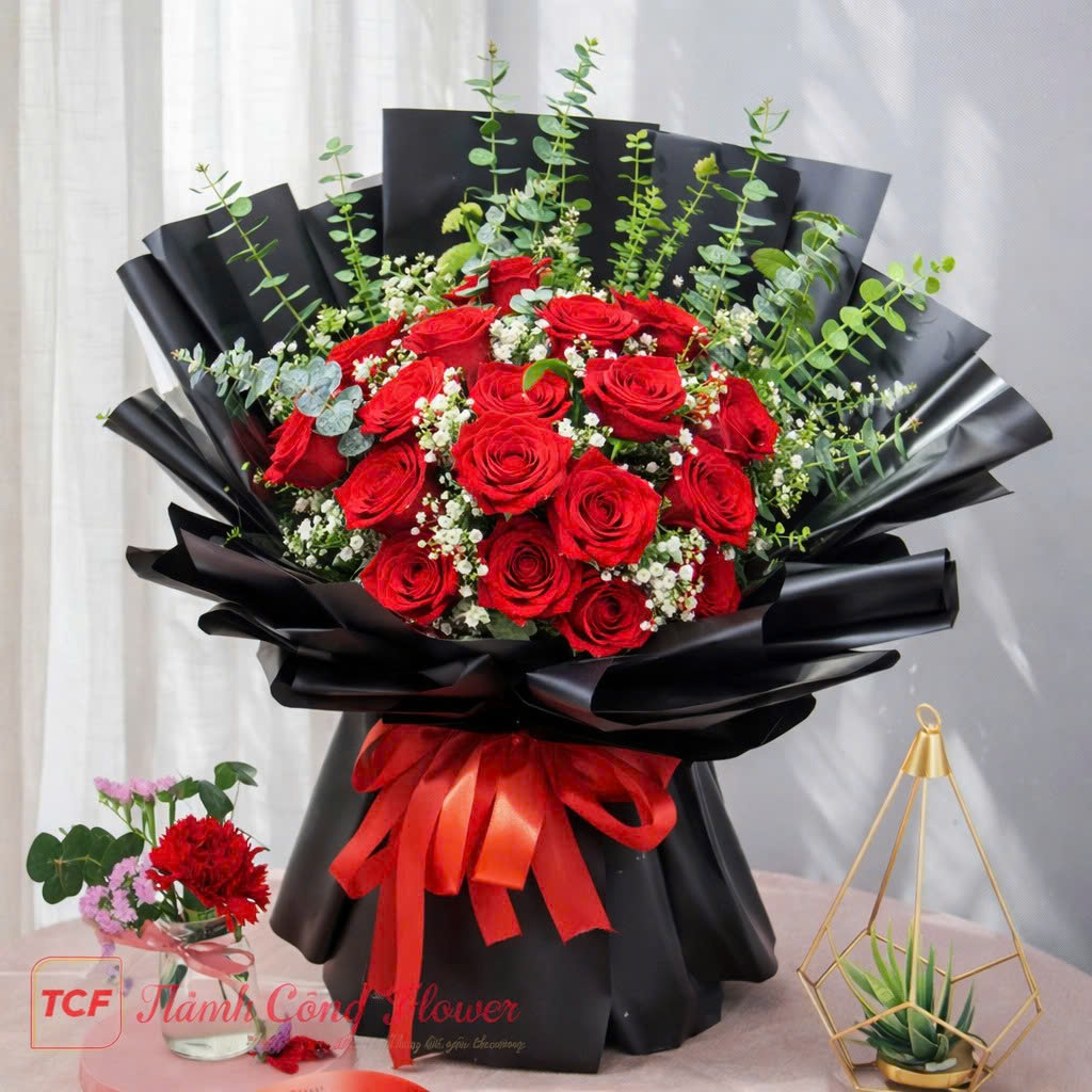 Tại Thành Công Flower, mỗi bó hoa đều được chăm chút tỉ mỉ từ khâu lựa chọn hoa đến thiết kế và hoàn thiện. Bó hoa hồng đỏ giấy đen “Tình Nồng” được thực hiện bởi những florist giàu kinh nghiệm, đảm bảo bố cục cân đối, màu sắc hài hòa và vẻ đẹp sang trọng trong từng chi tiết.
