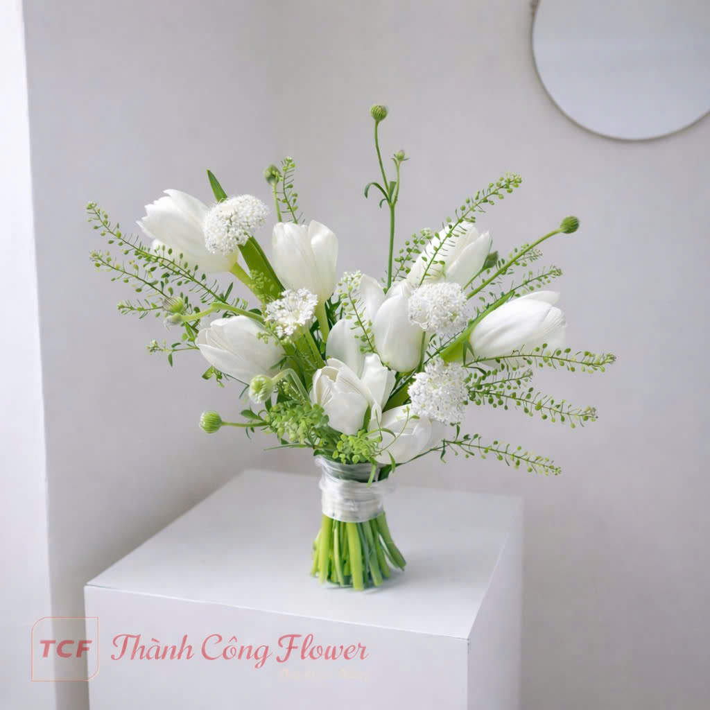 Trong hành trình bước vào hôn nhân, mỗi chi tiết đều mang một ý nghĩa đặc biệt, và bó hoa cưới chính là biểu tượng của tình yêu thuần khiết, nhẹ nhàng nhưng sâu sắc. Bó hoa cưới tulip trắng “Giai Điệu Hạnh Phúc” của shop hoa Thành Công là sự lựa chọn hoàn hảo dành cho những cô dâu yêu thích vẻ đẹp tối giản, thanh lịch nhưng vẫn toát lên sự sang trọng và tinh tế.
