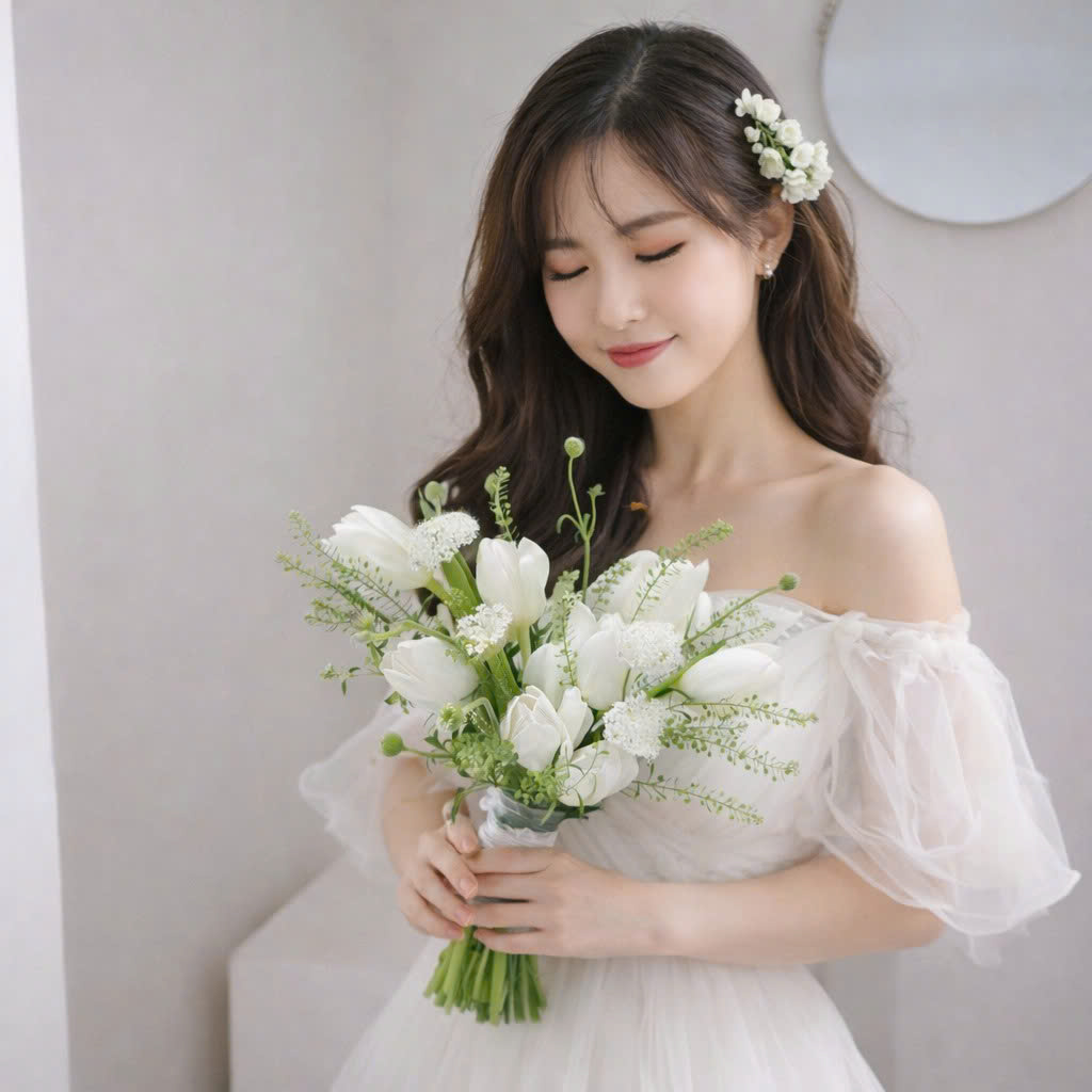 Một trong những ưu điểm nổi bật của mẫu hoa này là tính ứng dụng cao. Dù bạn tổ chức tiệc cưới trong không gian sang trọng, ngoài trời hay phong cách studio đơn giản, bó hoa cưới tulip trắng vẫn luôn là điểm nhấn hoàn hảo.