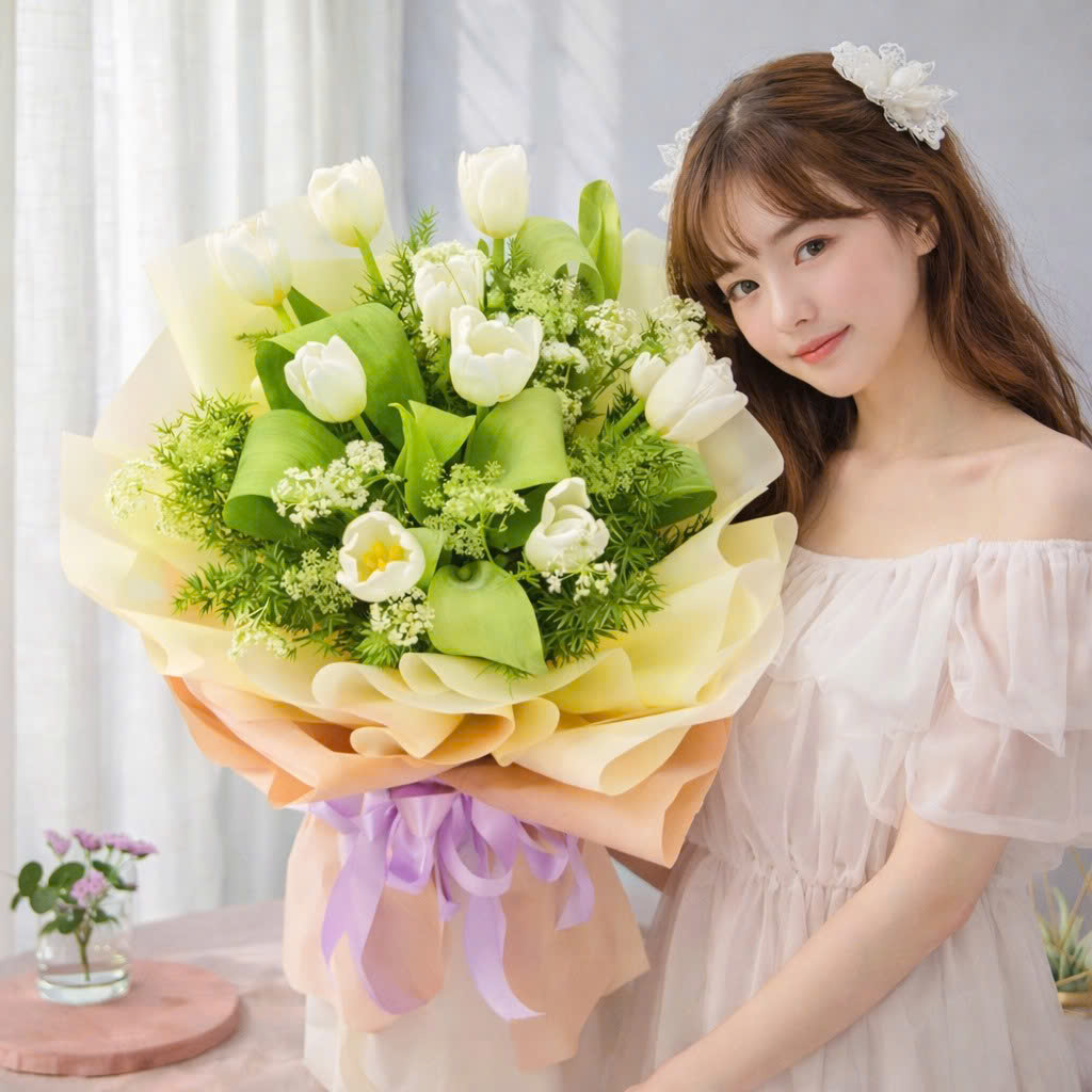 Bó Hoa Tulip Trắng “Hẹn Ước Trăm Năm” – Lời Hứa Tình Yêu Thanh Khiết Và Bền Vững