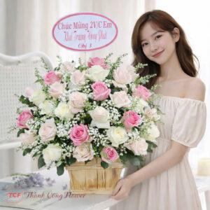 • Mỗi nghệ nhân cắm hoa sẽ có sự sáng tạo riêng, vì vậy sản phẩm thực tế có thể chênh lệch nhẹ so với hình ảnh mẫu. TCF cam kết đạt khoảng 90%–95% so với mẫu.